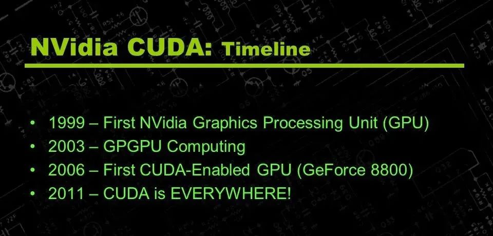 这就必须提到黄仁勋在2006 年下的大赌注——他们发布了一个名为CUDA(Compute Unified Device Architecture)的软件工具包。