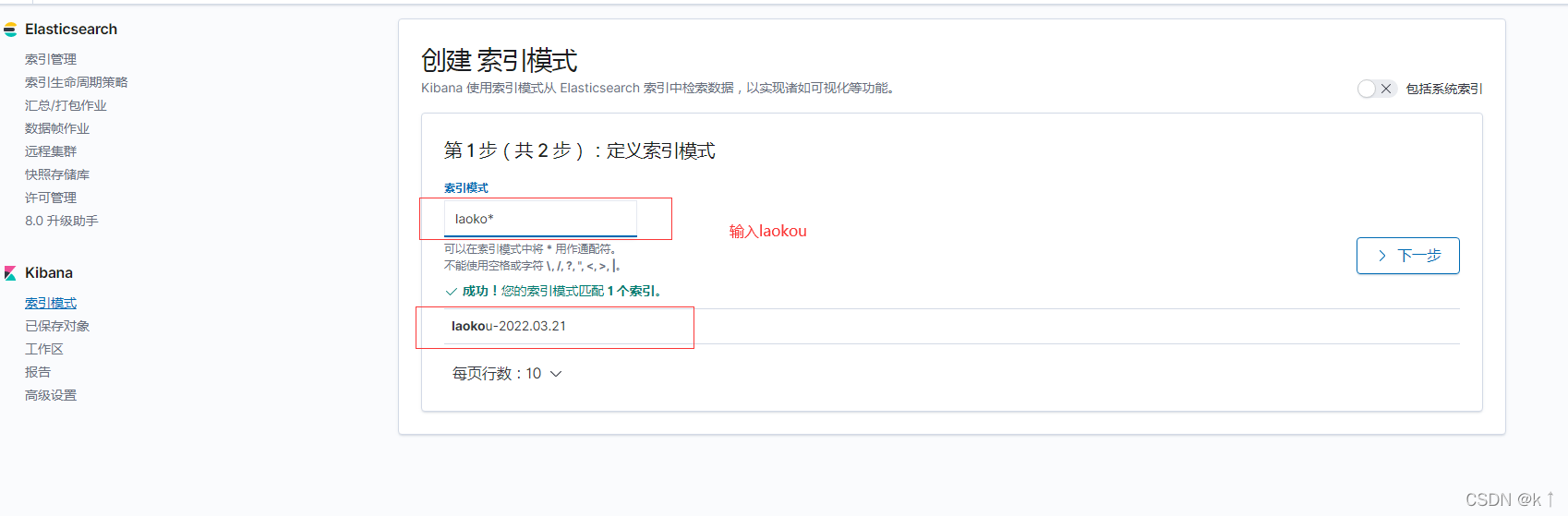 index => "laokou-%{+YYYY.MM.dd}" #索引名