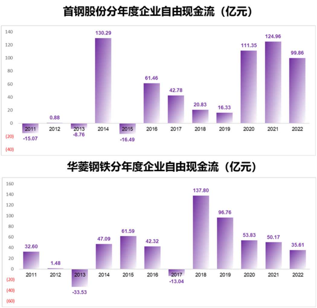 以首钢股份和华菱钢铁为例,跟其市值相比,两家公司的企业自由现金流都极其的充裕,这为企业分红打下了良好的基础。回顾马钢股份的案例,持有马钢股份的收益,最主要的就是来自于长期持续的分红。