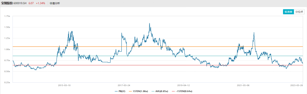 宝钢股份还有一个作用,就是作为钢铁股的天花板,其他钢铁股市值想要超过宝钢股份,都会经历一次性价比的考验。此外,宝钢股份也是中特估的标的之一,存在一定的估值溢价。