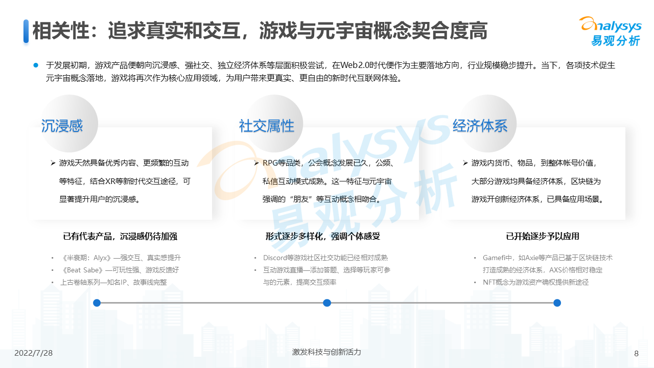 随着区块链、XR等领域技术的快速发展,元宇宙也在从概念开始逐步落地,NFT、Gamefi等应用场景涌现。游戏作为天然具备虚拟空间、力求玩家沉浸感的娱乐性产品,与元宇宙概念高度契合,具备较强关注、分析价值。