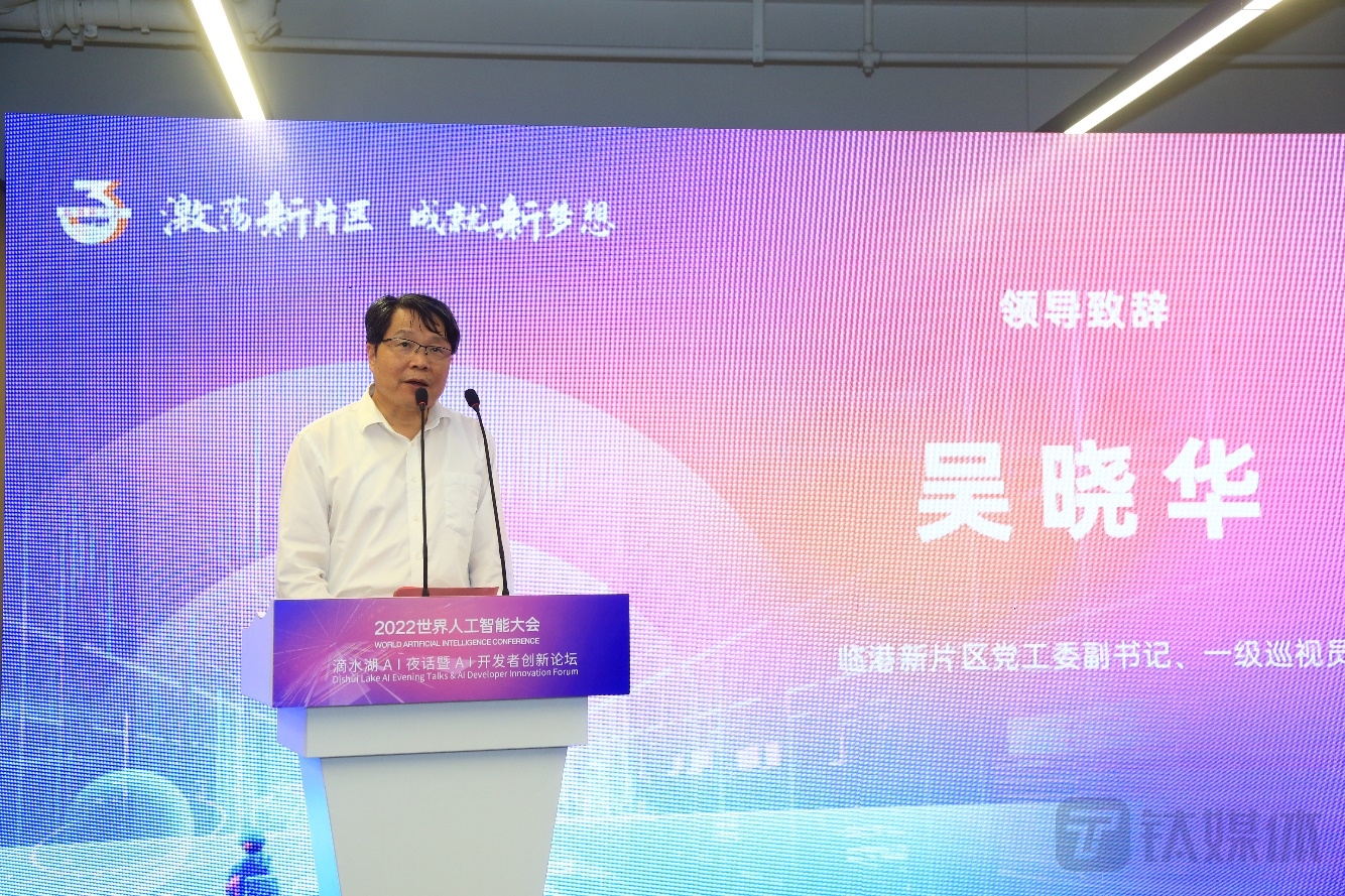 新片区三周年,开启新篇章;AI优秀开发者,齐聚临港。9月1日,2022世界人工智能大会隆重开幕。当晚,作为2022WAIC唯一晚间系列活动——“滴水湖AI夜话”暨AI开发者创新论坛点亮仪式在滴水湖AI创新港顺利举行。临港新片区党工委副书记吴晓华、市经信委信息化推进处(大数据发展处)处长钱晓,上海市人工智能行业协会秘书长钟俊浩、以及来自市开源信息技术协会、临港集团、港城集团、Kyligence、Linux基金会、Redhat、LF AI& DATA基金会、开源中国、Datawhale等开发者社区和开发主体代表近50人参加活动。