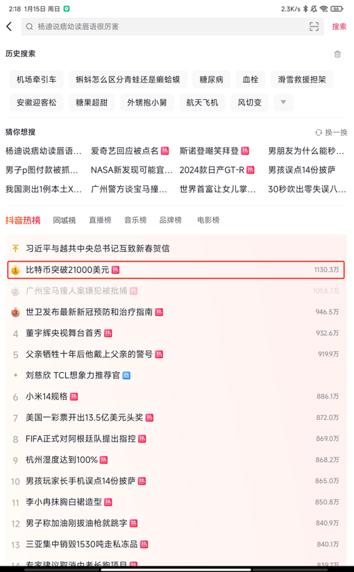 2023年1月15日,比特币因为突破21000美元冲上了抖音热搜榜第二,当天搜索量冲到了1130.3万。尽管如此,对于国内的用户来说,比特币,Web3这样的名词还相对陌生。