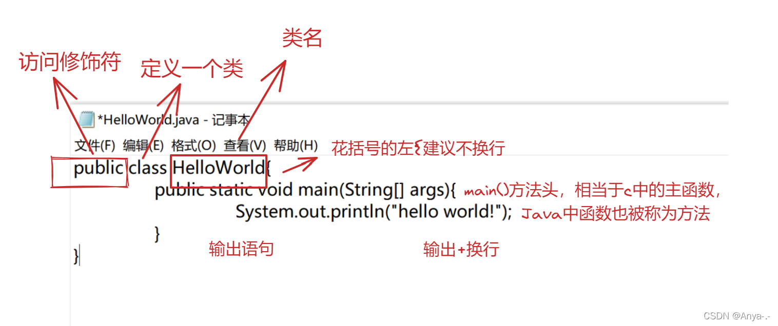 java中写一个输出hello world 的程序有点复杂,不像C语言那么直接printf,然后return 0;