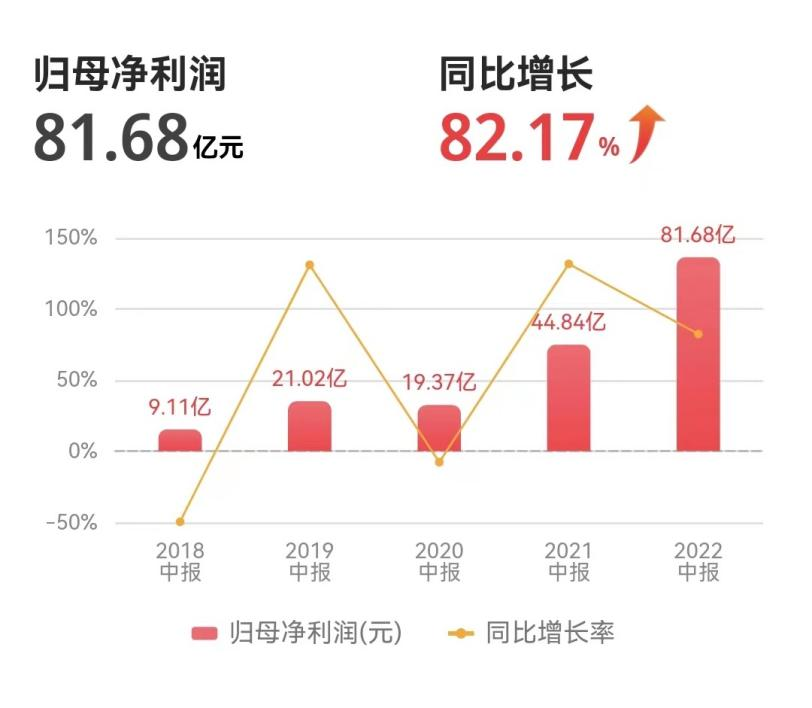 宁德时代2022年上半年营业收入为1129.71亿元,同比增长156.32%;净利润为81.68亿元,同比增长82.17%,一改第一季报的颓势。