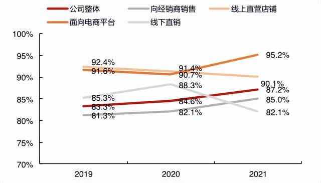 虽然直销模式提高了毛利率,例如巨子生物2019-2021年直销渠道毛利率91.1%、91.1%、90.1%,而经销渠道毛利率则为81.3%、82.1%、85.0%。