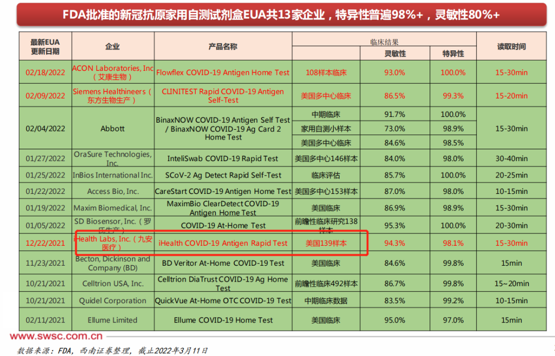 从专业角度分析,新冠抗原检测试剂盒并不是一个护城河很高的产品,在iHealth试剂盒上市之前,国内实则已经有20多家同类产品获批。iHealth试剂盒的最大优势在于成功切入美国市场,众所周知美国是一个转入门槛很高的市场,除了需要通过FDA的批准外,还要在美国开设临床试验。