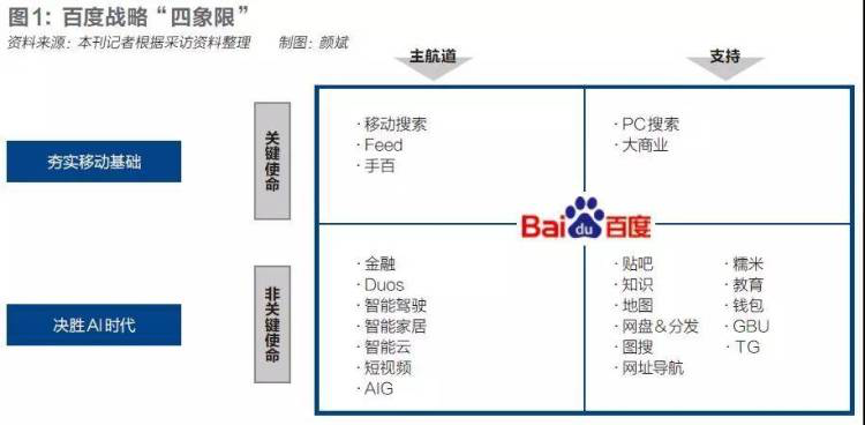 陆奇在百度任职的一年多时间里,留下最宝贵的是战略的梳理,在陆奇的梳理中,定下来以手百、移动搜索、feed为关键使命的主航道,同时主航道上还有智能云、智能驾驶等业务为非关键使命。
