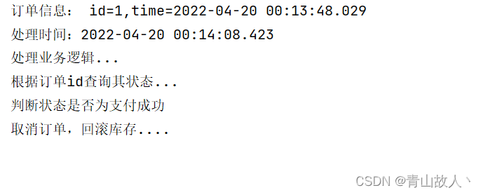 从图中可以看到,两个时间间隔正好是20s左右,由此实现了延迟队列的功能