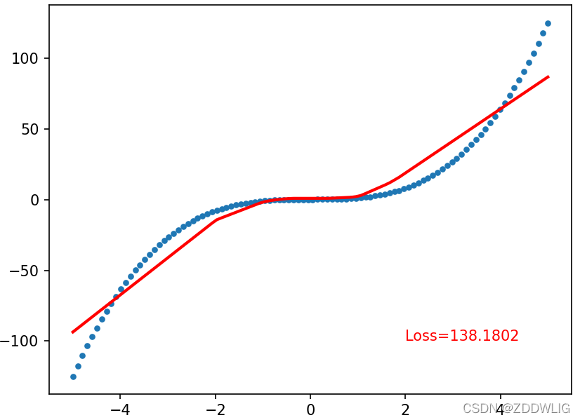 既然是拟合,我们当然需要一些数据啦,我选取了在区间 内的100个等间距点,并将它们排列成三次函数的图像。