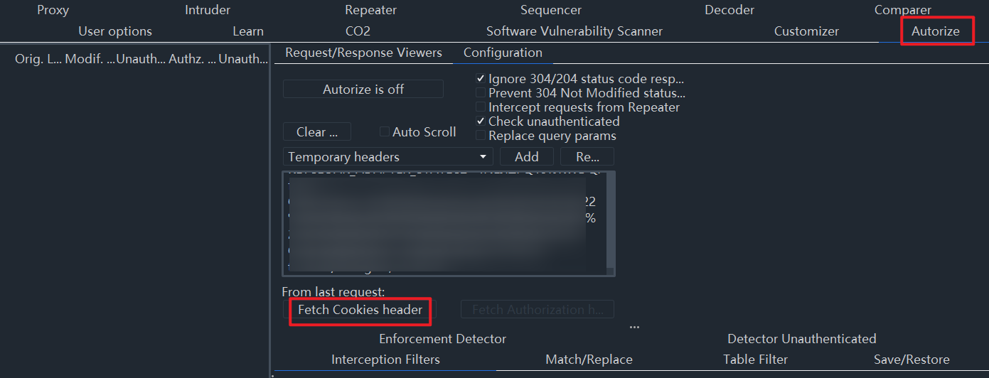 将低权限用户的 cookie 提供给扩展程序并使用高权限用户浏览网站就足够了。该扩展会自动重复每个请求与低权限用户的会话并检测授权漏洞。