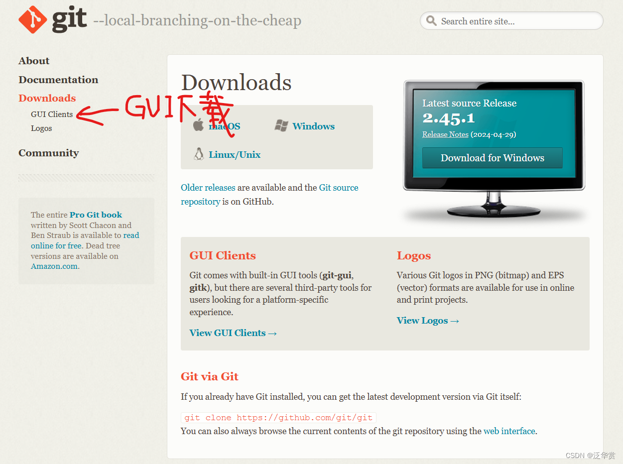 在git官网上面有GUI的下载界面