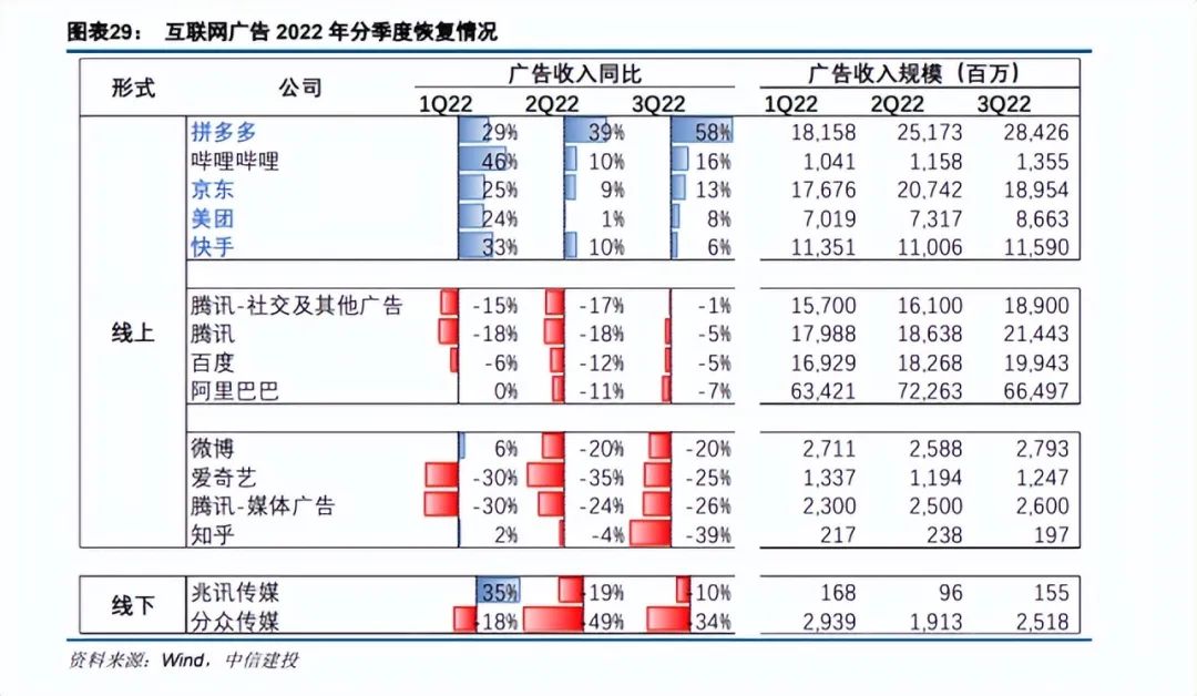 与宏观经济联系最紧密的广告行业则在二季度开始触底,并于三季度缓慢恢复。