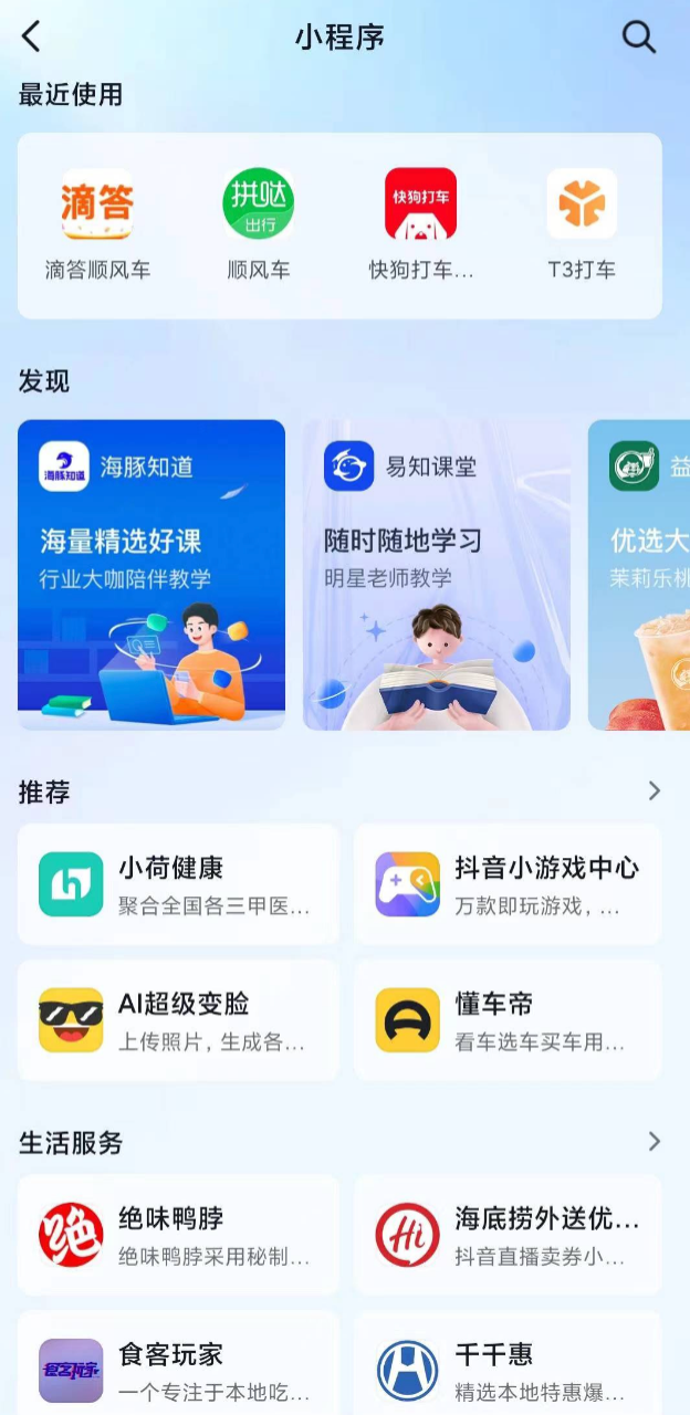 首先,目前抖音平台上打车小程序隐藏的接口较深,用户需要在抖音小程序内搜索“打车”“出行”或者出行服务商品牌名才能找到。