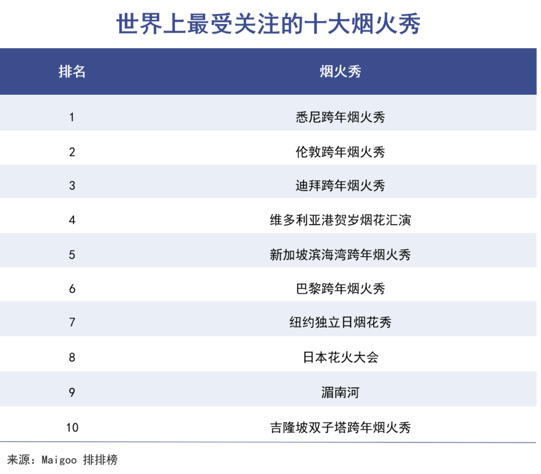 有媒体评出是世界上最受关注的十大烟火秀,但是遗憾的是,作为烟火的故乡,中国尚无烟火秀入围。
