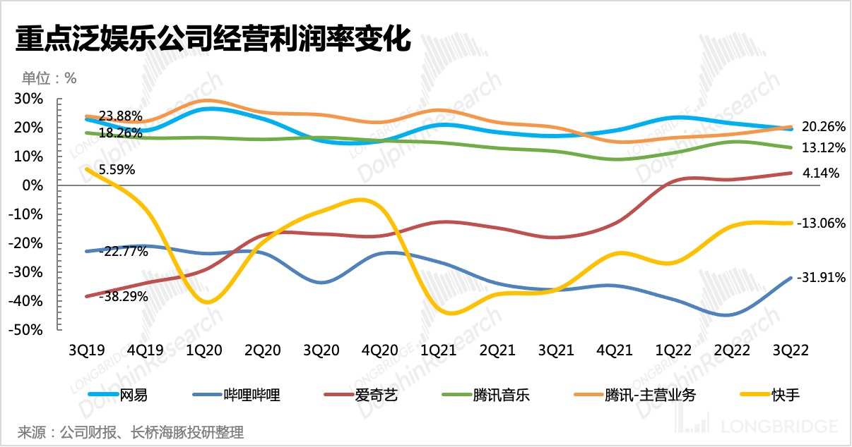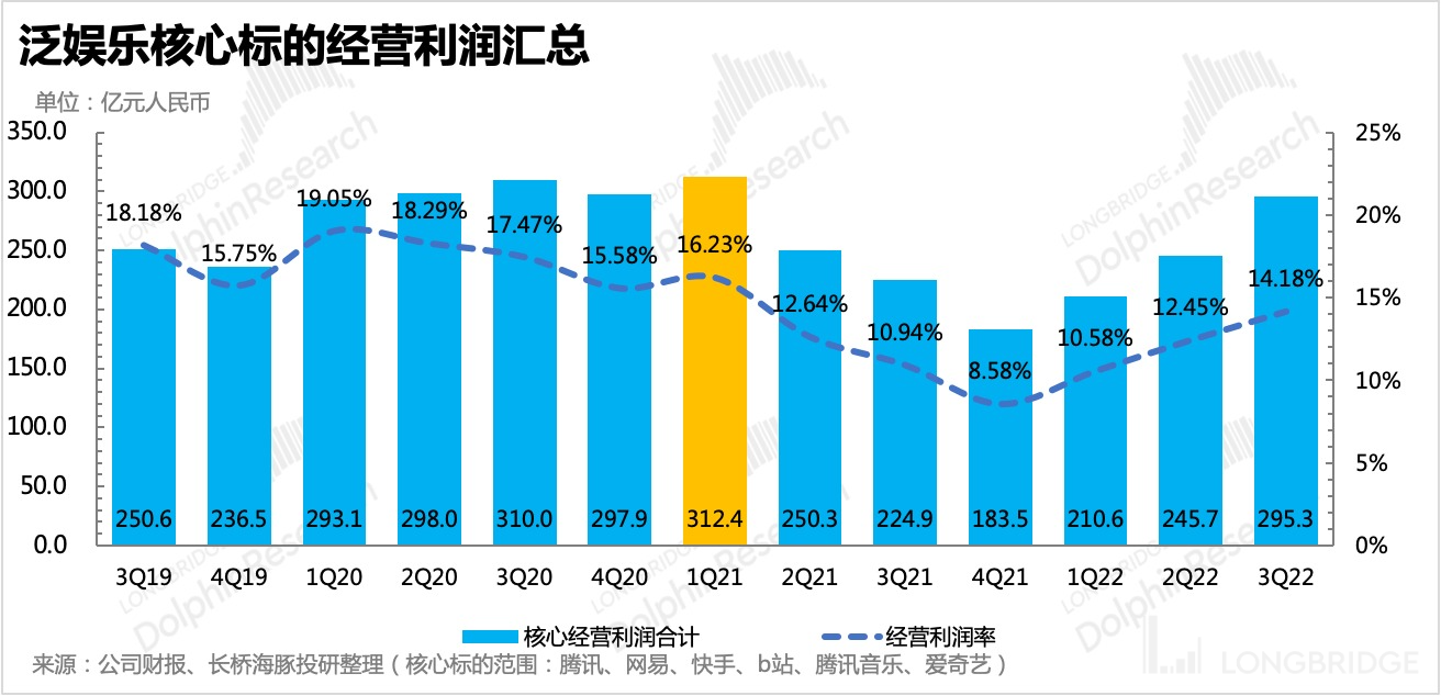 而从总的趋势来看,三季度的降本增效虽然是延续一、二季度的经营路线。但对比绝对值,三季度泛娱乐平台经营利润总额已经快要看齐还在繁荣期 2021 年一季度,市场过于小看了互联网平台 “瘦身” 的决心。