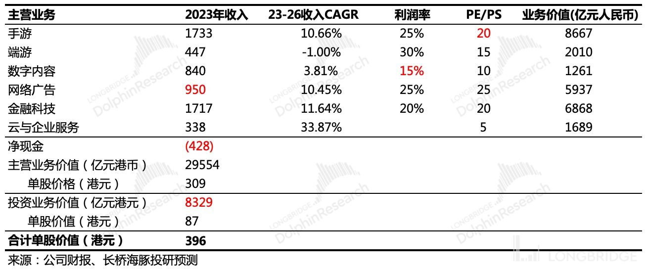 3.8 万亿的估值相较当前 3.4 万亿港元的市值,虽然安全垫也已经被抹去不少但仍有 12% 的空间。如果视频号或者游戏的修复出色,IFRS 归母净利润显著出我们的超预期,那么股王的乐观估值也有望继续上修。