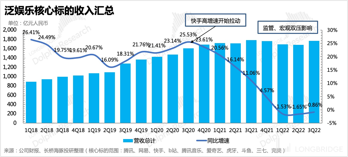 先来回顾一下三季报,泛娱乐公司们的答卷虽然并没有多么差,但也绝对不能称得上好。一致性的表现为,收入可预期性承压,但公司的降本增效做得不错,连爱奇艺这样的商业模式难自证的平台,也在断了一条胳臂后,迈入了盈利阵营。