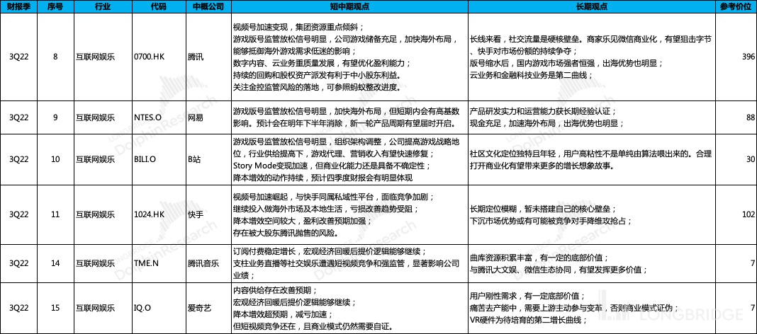 4)而垂类平台**爱奇艺和腾讯音乐**,海豚君认为主营业务上没有足够的成长力,并且当前的反弹基本到位。如果有回调的机会,腾讯音乐的确定性比爱奇艺要更高一些。