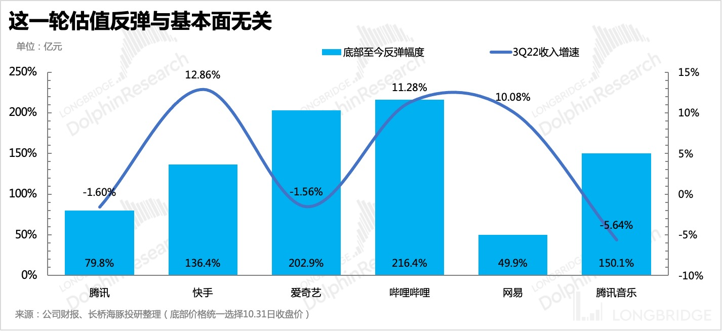 相反,增长肉眼可见到顶的爱奇艺、斗鱼们,则只能最多关注一下是否还有估值修复的空间。