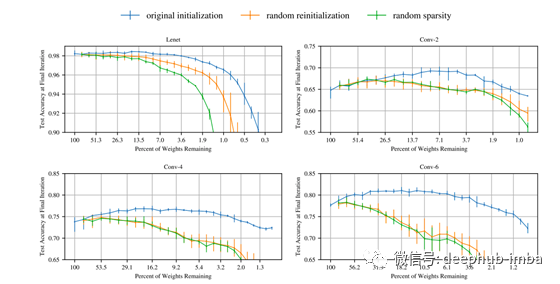 - 当我们重新训练修剪后的网络时,如果未修剪的权重初始化为它们的原始参数大小会怎样?如果您是从经过训练的网络(例如网络A)中获得的修剪的网络,请考虑网络A的这些初始参数的大小。