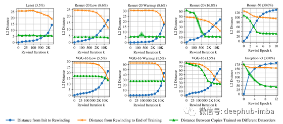为了能够将彩票假说使用到ImageNet,Frankle等人的数据集,有人发表了关于线性模式连通性的论文(https://arxiv.org/abs/1912.05671),该论文对彩票假设进行了概括。它提出了权重反卷积后作为修剪后初始化网络权重的一种潜在方法。之前,我们以最大的初始量来初始化它们。权重反卷积的作用是将剩余的权重倒带到原始网络训练中的某个位置。换句话说,幸存的权重从原始网络训练的批次5开始初始化。