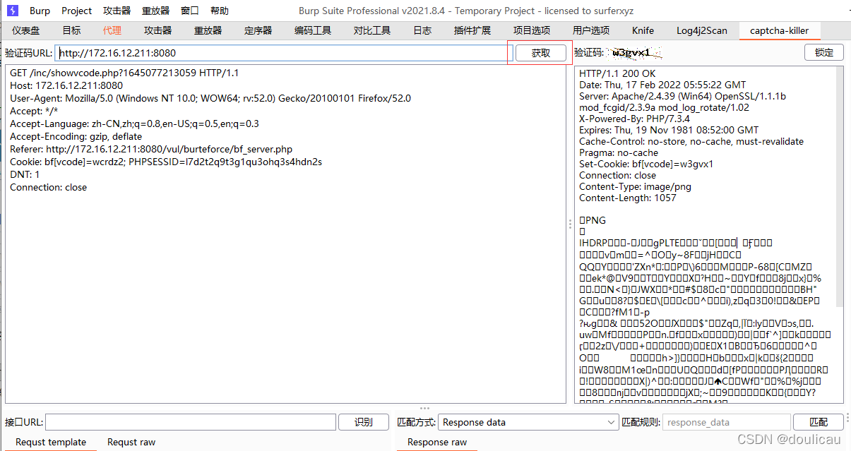 3、然后到切换到captcha-killer插件面板,点击获取即可拿到要识别的验证码图片内容。