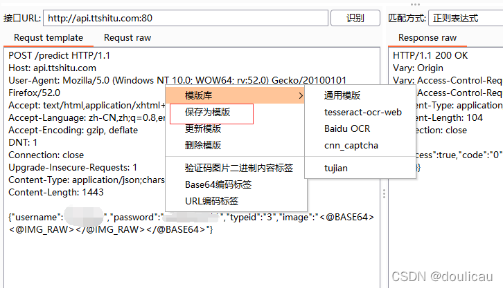 请求包,username,password处去http://ttshitu.com注册账号,该平台识别500次一元钱: