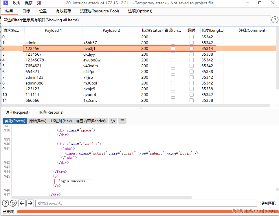 7、开始攻击可以看到攻击结果,验证码顺利爆破