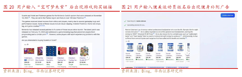 目前,据华西证券发现,Chat界面提供了新的广告位:Bing已经在回复框中,对电商产品进行展示引流。