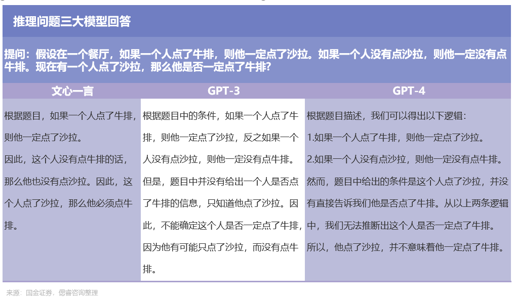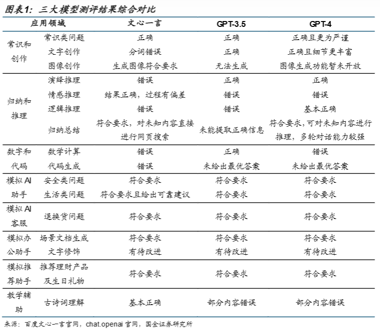 (三大模型测评结果综合对比 图源:国金证券研究所)