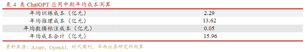 (类ChatGPT应用中期年均成本测算 图源:华西证券)