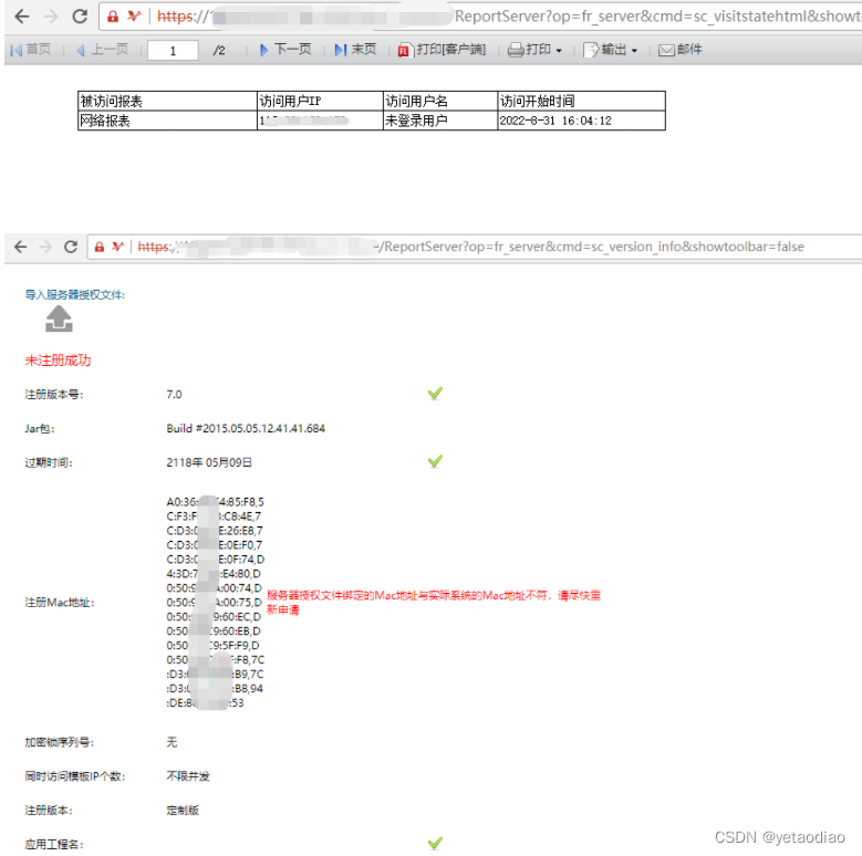 http://ip/ReportServer?op=fr_server&cmd=sc_visitstatehtml&showtoolbar=false //未授权访问内网ip的日志