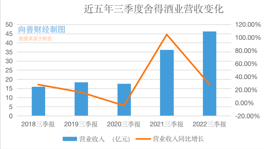 据舍得三季报数据显示,2022年1-9月份公司实现营业收入46.17亿元,同比增长28%,归属于上市公司股东的净利润12亿元,同比增长23.76%。