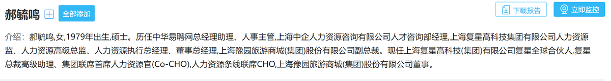 据天眼查专业版APP显示,辞职的董事郝毓鸣不仅仅在舍得担任高管,也担任着上海复星高科技(集团)有限公司复星全球合伙人、上海复星高科技集团有限公司人力资源高级总监、复星总裁高级助理等诸多重要职务。如今郝毓鸣辞职后不再担任舍得酒业任何职务,算是彻底与舍得酒业撇清了关系,这是否代表了复星集团的一种态度?