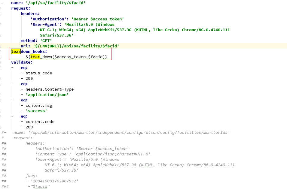 在测试用例中,对应接口的上一个步骤中调用tear_down函数,代码如下图:
