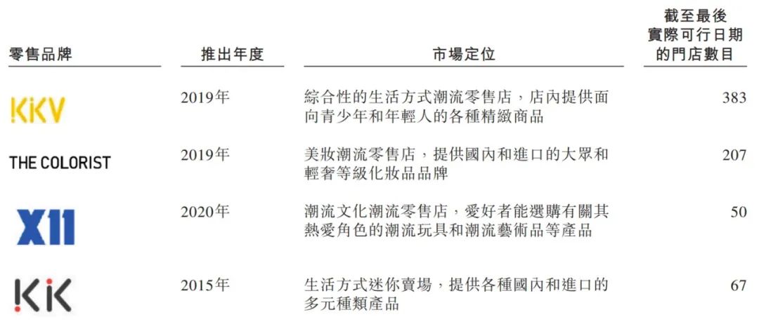 2019年,公司开始践行多品牌战略,先后推出了生活方式集合店品牌KKV和新生代一站式美妆零售品牌THE COLORIST;并在宣布完成1亿美元的D轮融资后将品牌升级为KK集团。随后,又在2020年推出了全球潮玩集合品牌X11。