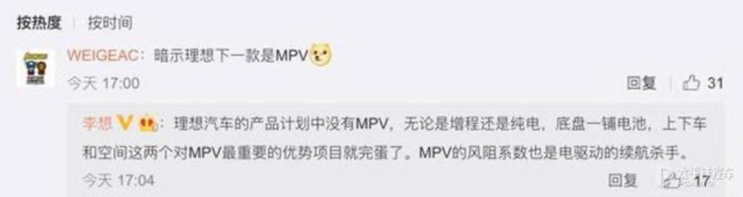外界从理想汽车对于MPV赛道看法的转变,可以看出新势力车企对该赛道态度的变化。此前理想汽车并不看好MPV。2020年3月15日,理想汽车创始人李想在微博上称“理想汽车的产品计划中没有MPV”。李想的解释是,底盘铺电池会影响MPV的使用性能和续航能力。
