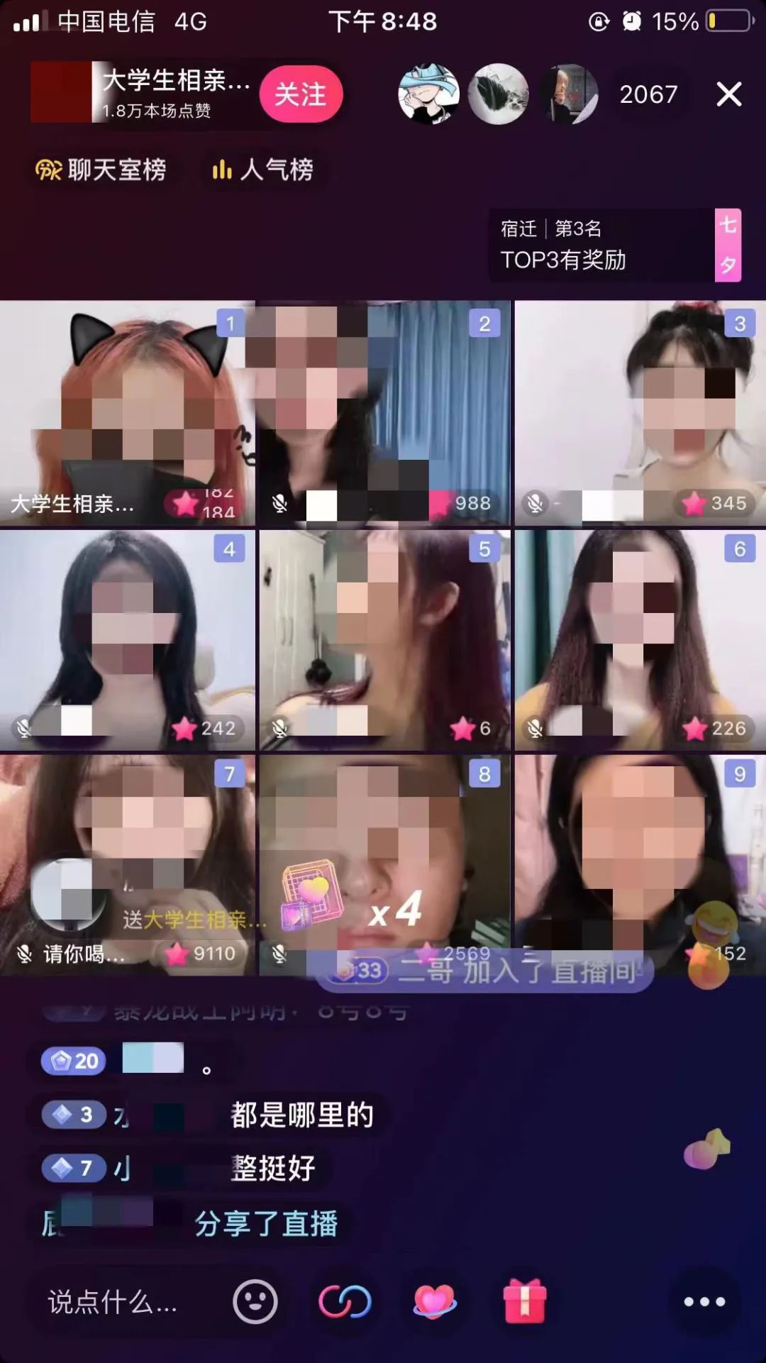 “哥哥,给人家‘告白’一下吧”“五号要被比下去了,有没有大哥刷点花”“谢谢大哥送的‘跑车’”……在抖音平台某直播间举行的“大学生相亲”现场,主持人不停“诱惑”观众给嘉宾送礼物。
