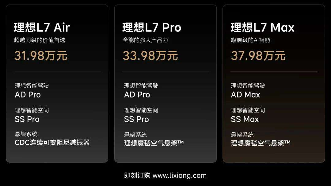 早在去年理想汽车发布理想L8的时候,理想L7的另外两个版本L7 Pro和Max版作为L8新车发布会的“one more thing”面世。据悉,理想L7 Pro和Max将在3月1日开始交付,Air将在4月初开启交付。