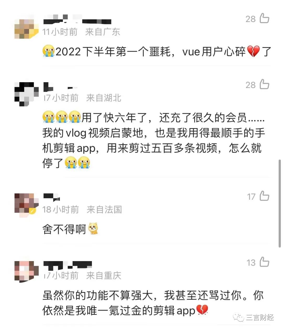 数百条的评论中,他们讲述自己和VUE的故事,弥漫的是种浓浓的悲伤情绪。