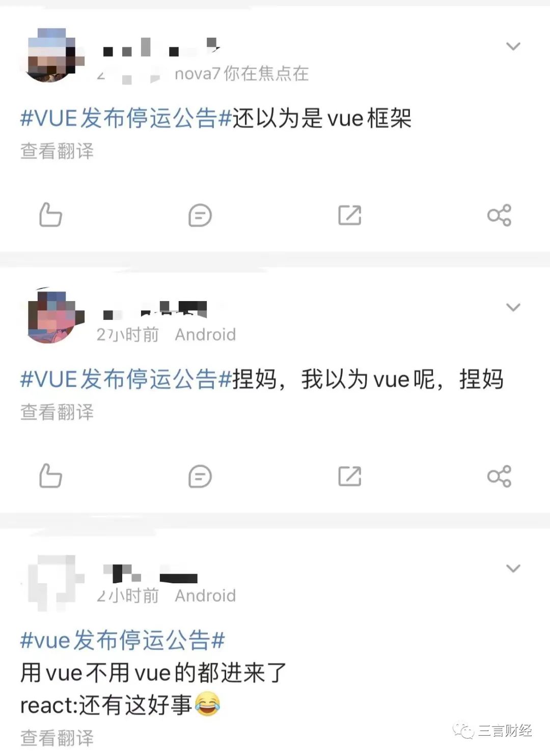 “我还以为饭碗被砸了”,有程序员差点就破防。#VUE发布停运公告#这个话题的创建媒体也向程序员们道歉,试图平息程序员们的愤怒。