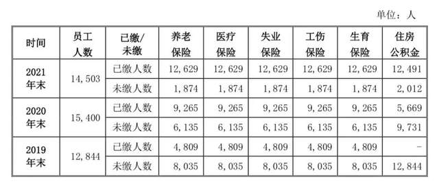 数千名员工未缴纳五险一金来源 / 老乡鸡招股书