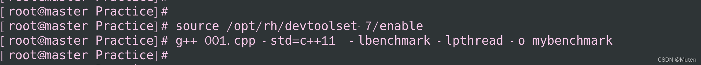 g++ 001.cpp -std=c++11 -lbenchmark -lpthread -o mybenchmark