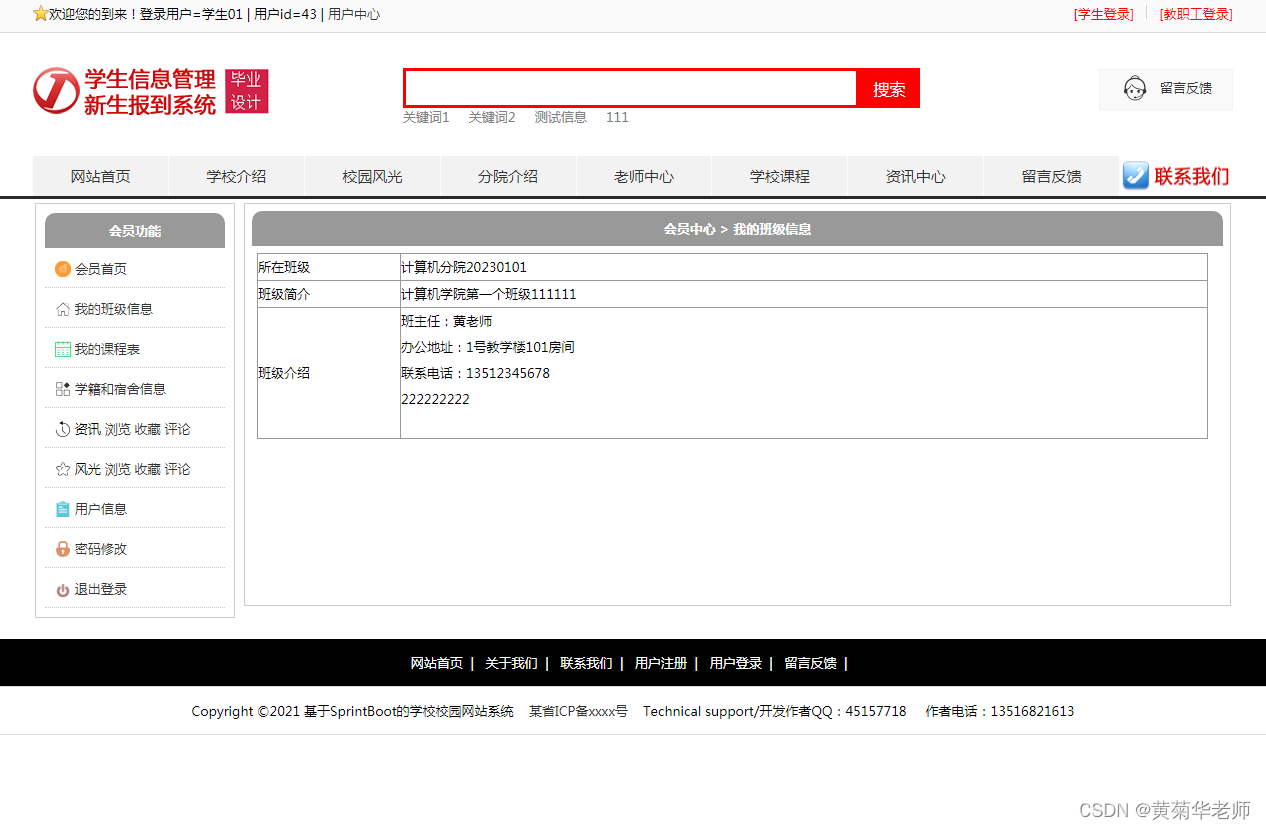 我的班级信息:新生报到的班级信息,里面有相关联系方式,地址等