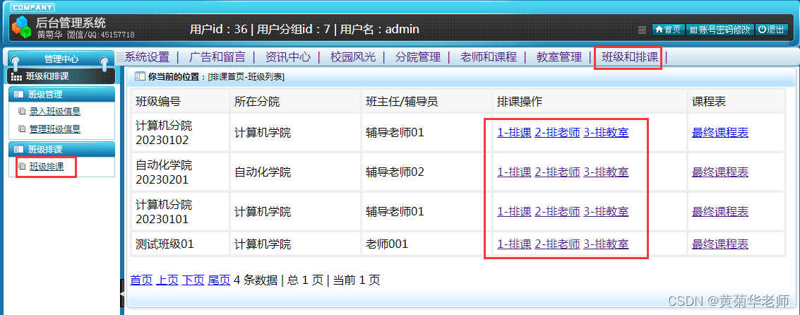 班级排课:根据班级,1排课,2排老师,3排教室,按123步骤给班级排课