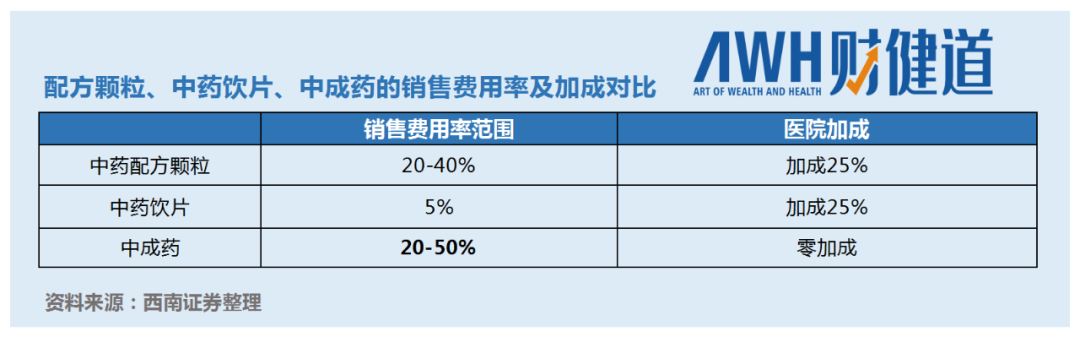 相较中成药的零加成政策,中药配方颗粒目前保持了类似中药饮片的管理方针,不取消药品加成,不计入药占比,同时,中药配方颗粒价格普遍高于中药饮片,可以说是很好地满足了院端的利益诉求。
