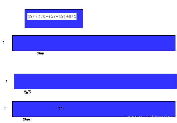 5.遇到-查看链表中的末尾是否为乘号或者除号,发现不是的将70和-放入链表中并将num置0。