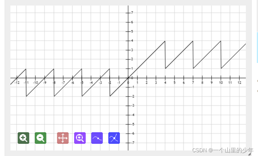 我们首先来看一下一个函数的图像x%i. 假设i=4.