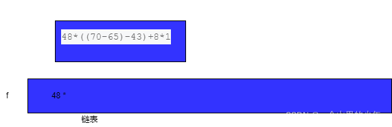对应公式串:48*((70-65)-43)+8*11.首先遇到48将其放入到num中